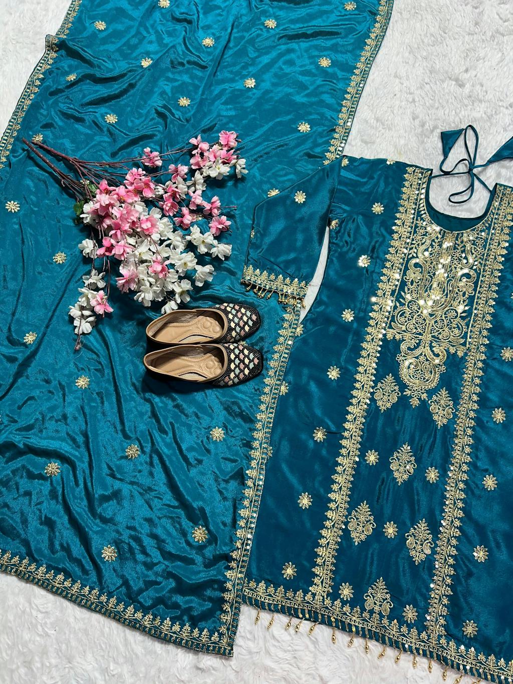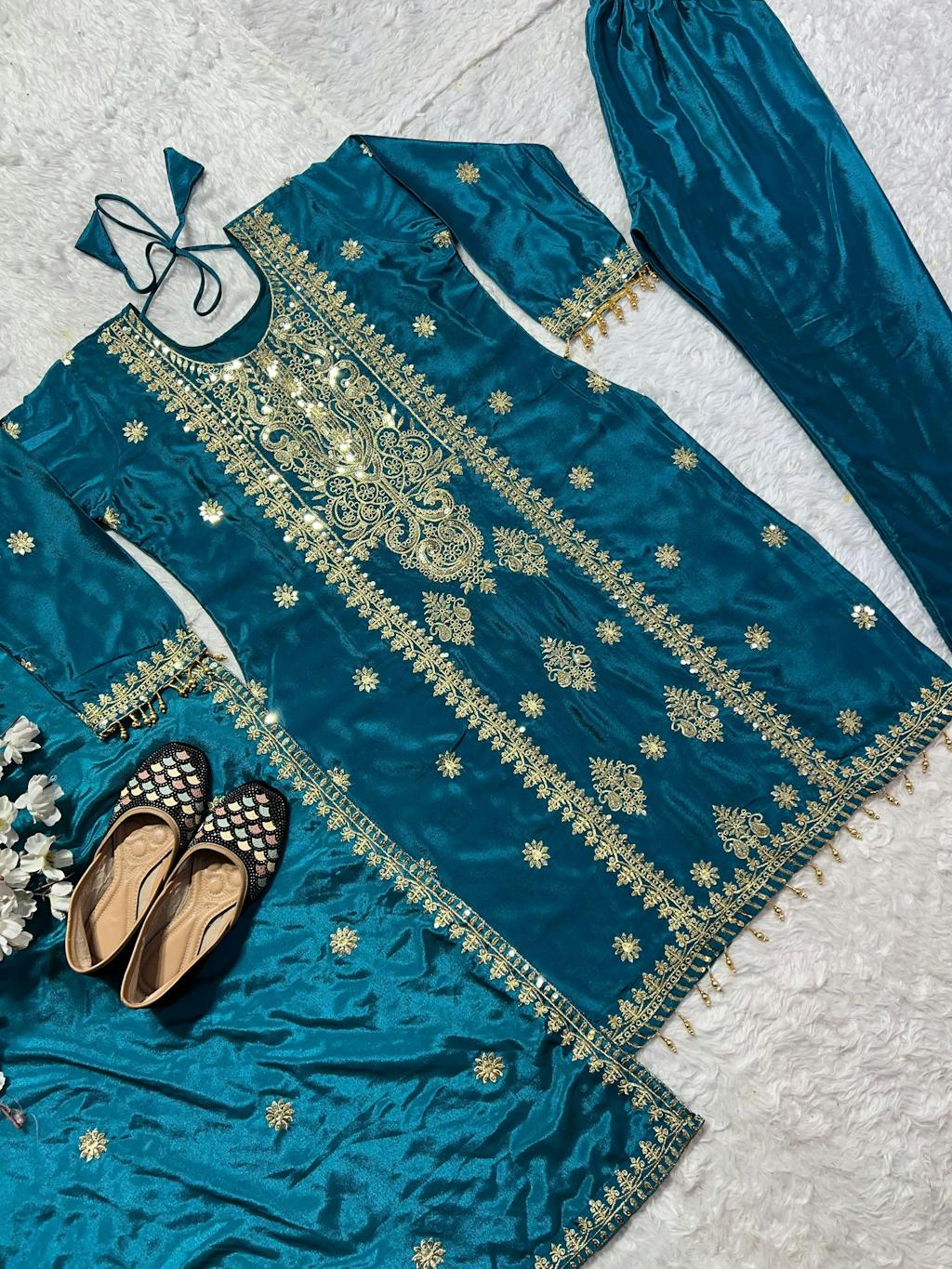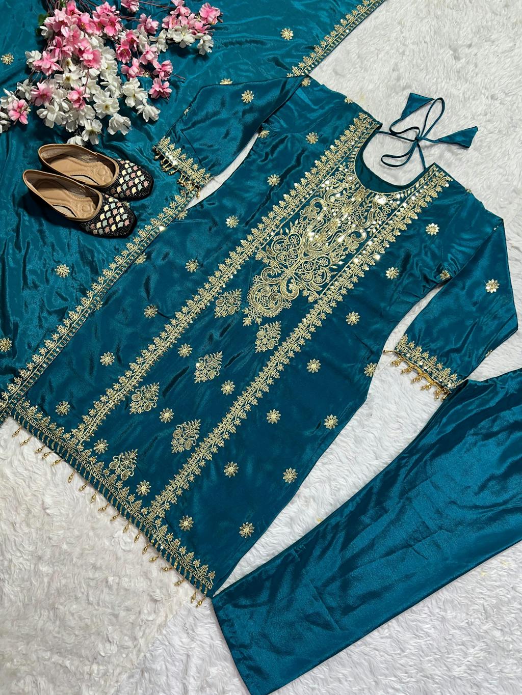 💃*Pant fabric* :Pure Heavy Chinnon Silk With Heavy Embroidery Coding Sequence Work *(FullyStitched)*