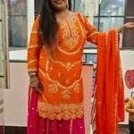 Plazzo fabric :Pure Heavy Chinnon Silk With Heavy Embroidery Coding Sequence Work  (FullyStitched)